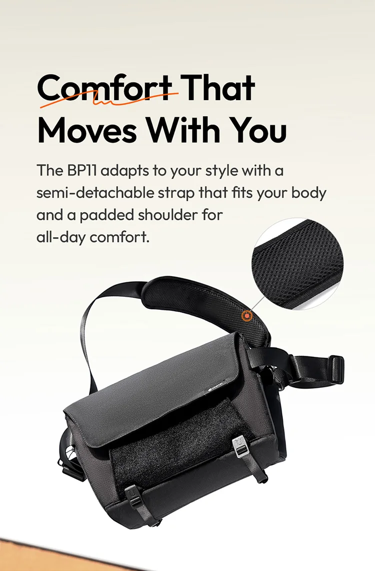 The BP11 adapts to your style with a semi-detachable strap that fits your body and a padded shoulder for all-day comfort.