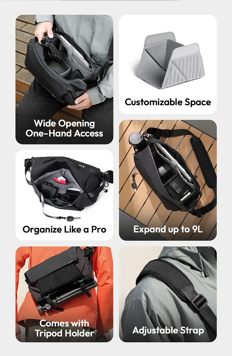 BP11 Camera Sling Bag Concept Shoulder 9L for Digital Canon/Nikon/Sony/Dji Drone Lightweight Travel DIY Photography Bags