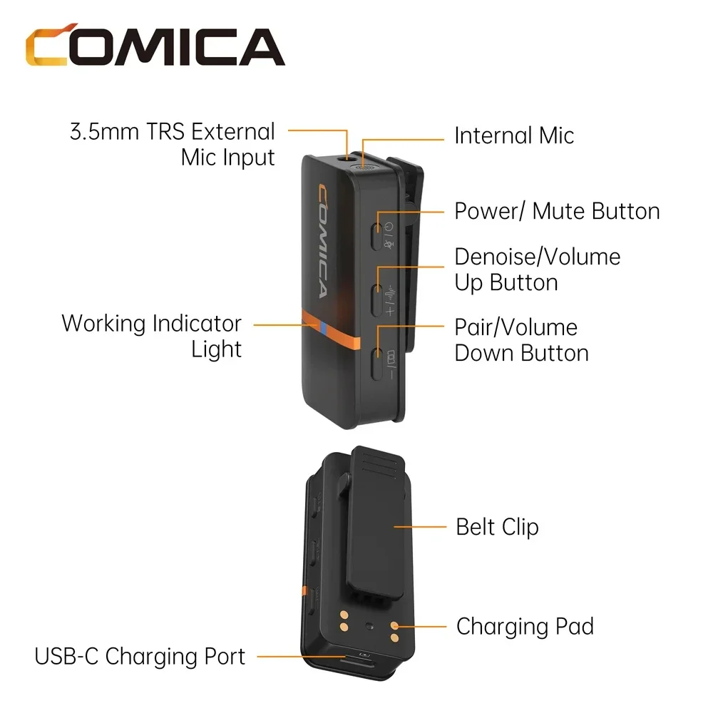 Comica Vimo Q Four Channel 2.4G Mini Wireless Microphone with Charging Box for Camera Smartphone PC Live Streaming Interviews