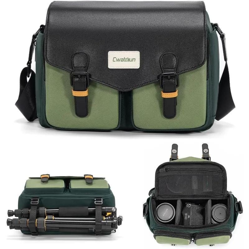 Cwatcun Camera Shoulder Bag Compact Camera Box, Small Waterproof Camera Messenger Bag,Tripod Stand Canon, Nikon, SONY, Fujifilm