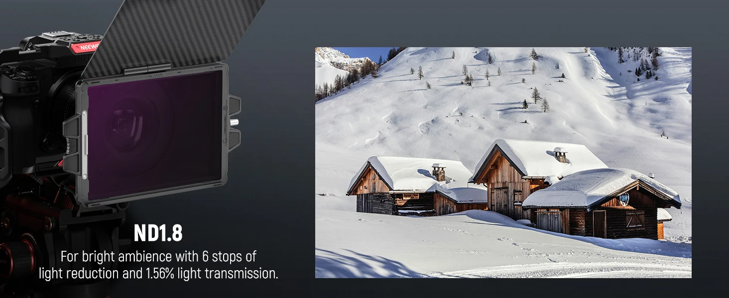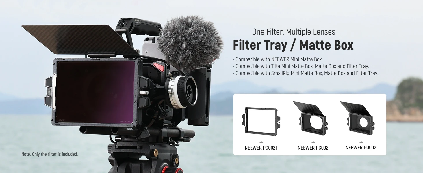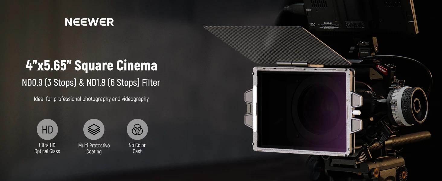 【Matte Box ND Filter】 Designed for NEEWER matte box, also compatible with Tilta compatible with SmallRig mini matte box and filter frame. The 4"x5.65" sqaure filter enables better control over shutter speed and aperture, avoids overexposure and balances image exposure, perfect for photography and videography under bright sunlight with motion blur effects