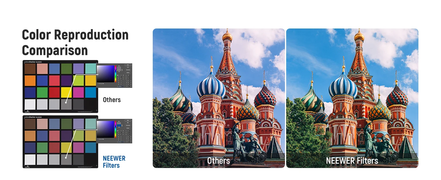 【HD Optical Glass with No Color Cast】 HD optical glass delivers high clarity and ensures no color balance affected. Instead of threading onto lenses, the square ND filter is mounted on a matte box and suits lenses of various focal lengths, perfect for 8K and 4K video recording