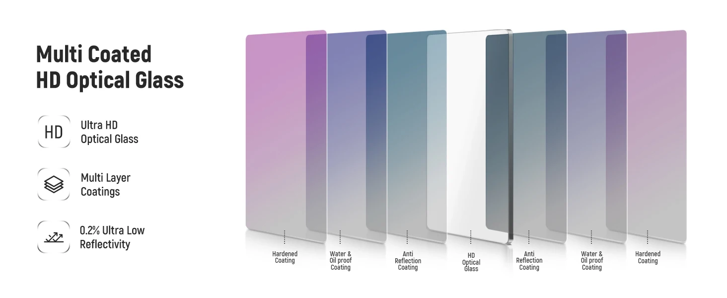 【Dual Sided 30 Layered Coatings】 30 layers of coatings on both sides make the filter scratch resistant, water repellent, oil proof and fingerprint resistant. Use the included cleaning wipes to clean the filter with ease